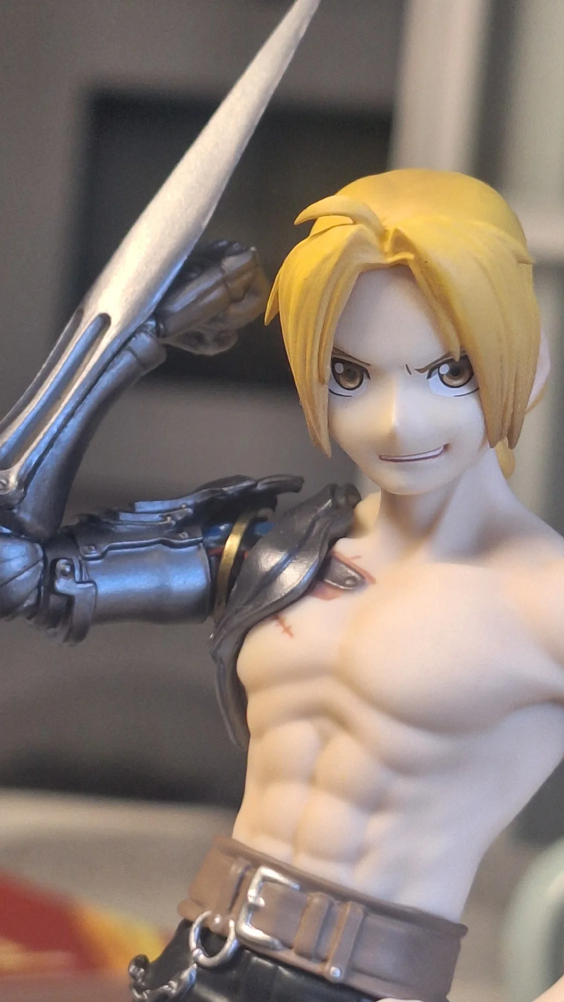 - Produit : Figurine d’Edward Elric torse nu – bras mécanique déployé