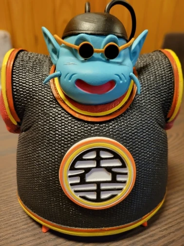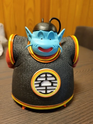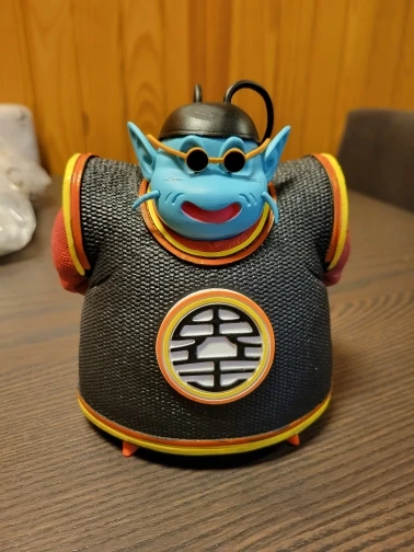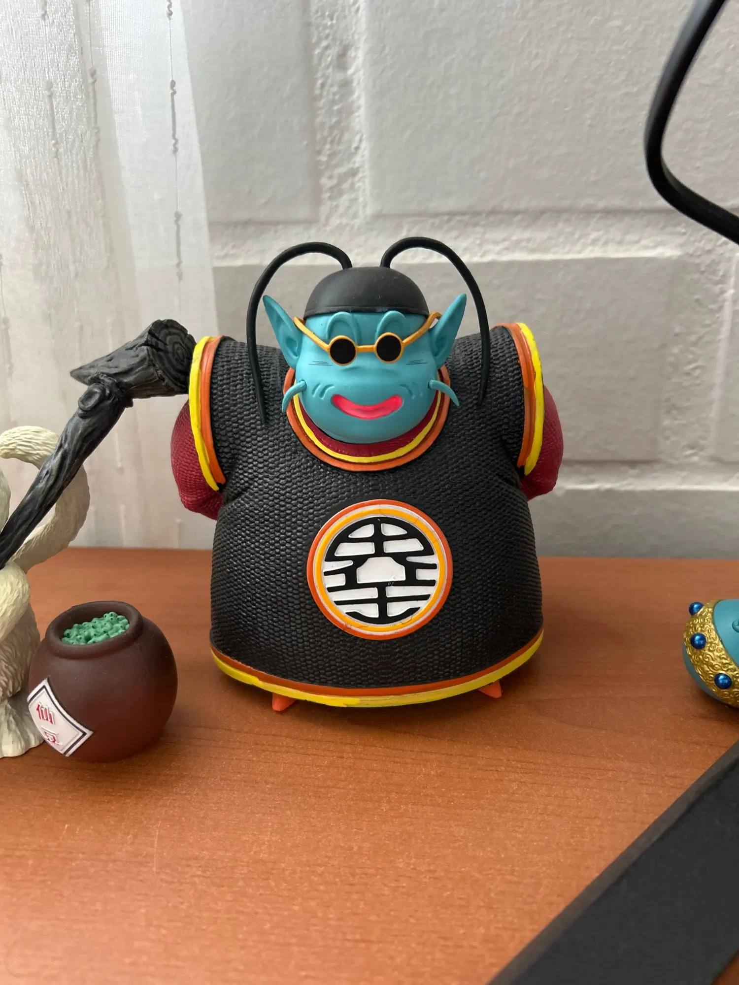Les détails minutieusement sculptés mettent en valeur le visage jovial de Maître Kaio, son sourire malicieux, ainsi que son habit traditionnel distinctif. La pose dynamique et l'expression pleine de sagesse reflètent son caractère unique en tant que mentor de Goku et des autres combattants de l’univers Dragon Ball.