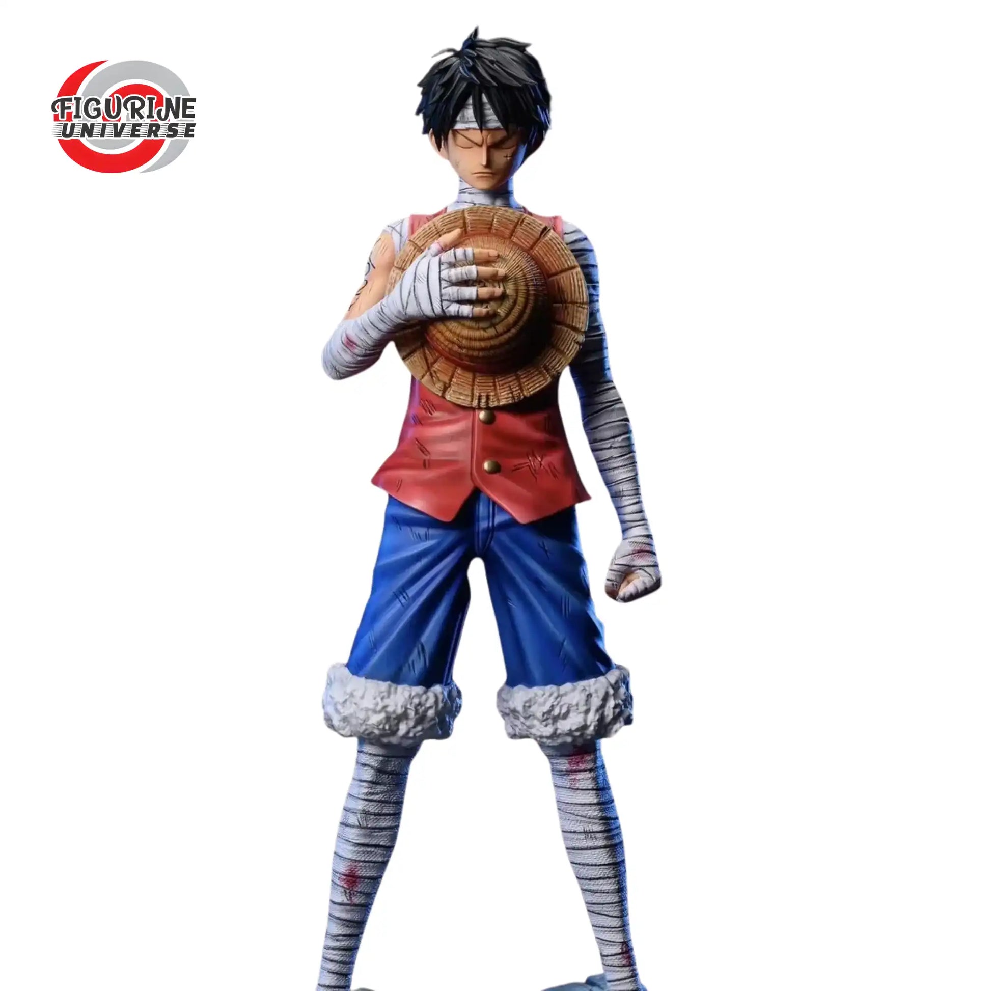 Cette figurine emblématique illustre Monkey D. Luffy après une bataille acharnée, le corps recouvert de bandages mais l'esprit indomptable. Son poing serré tenant son légendaire chapeau de paille incarne toute sa volonté de protéger ses amis et de devenir le Roi des Pirates.