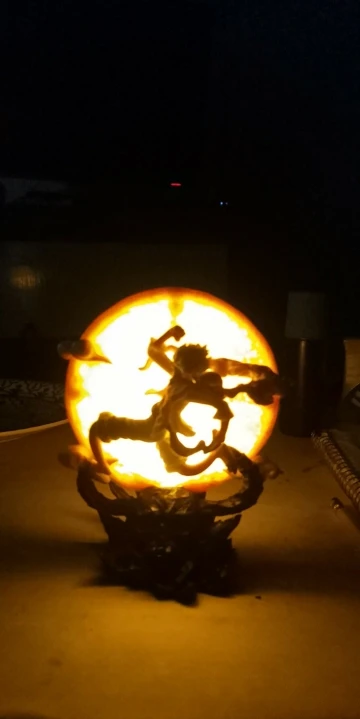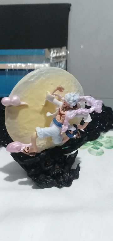 - Produit : Figurine de Luffy en transformation Gear 5 (Nika) avec socle lune et crâne
