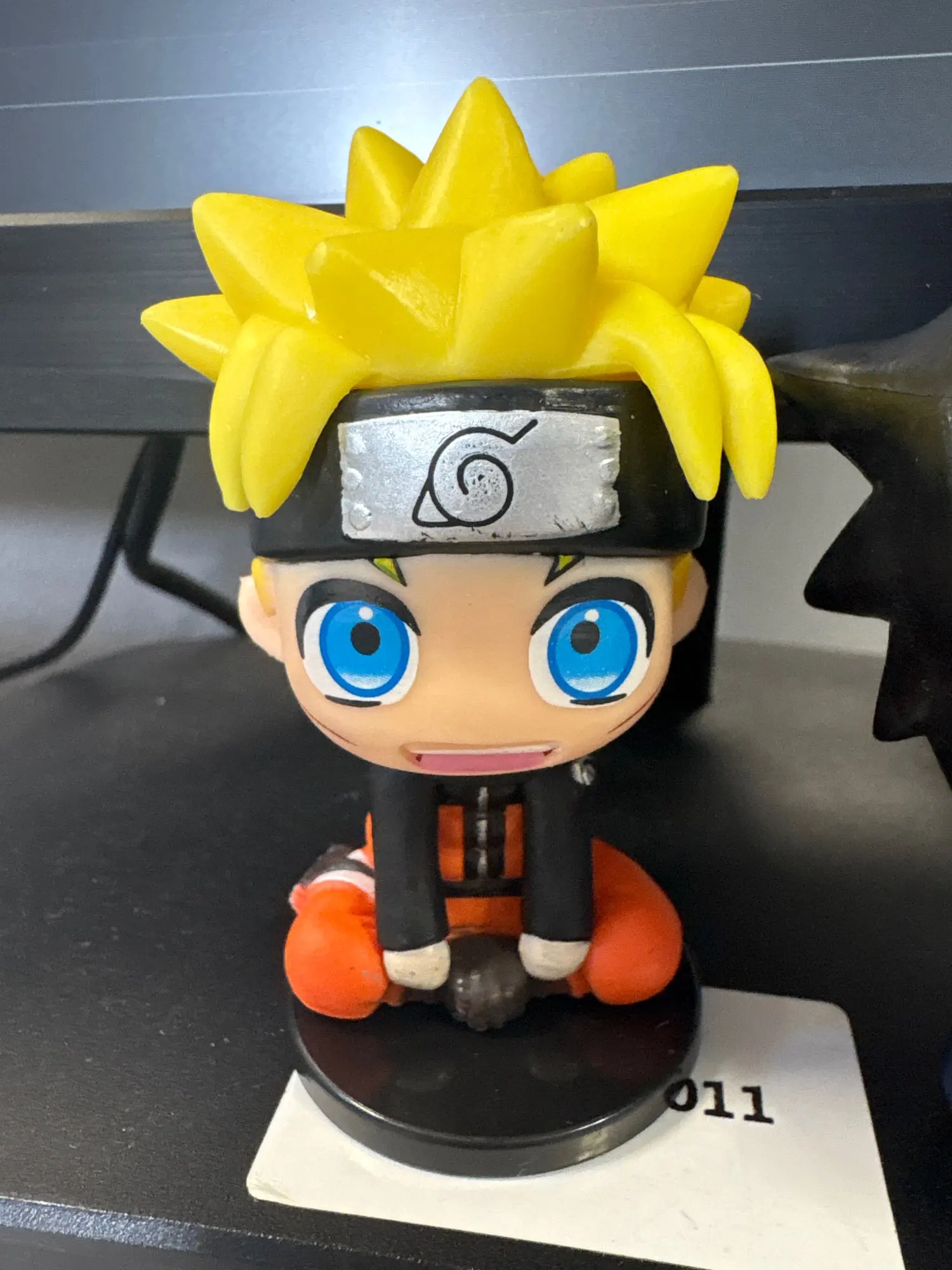- Produit : Figurine chibi de Naruto Uzumaki assis, sourire éclatant
