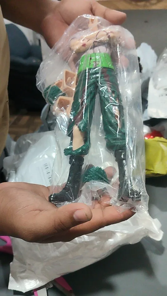 - Produit : Figurine de Zoro debout, les bras croisés, avec blessures et vêtements déchirés