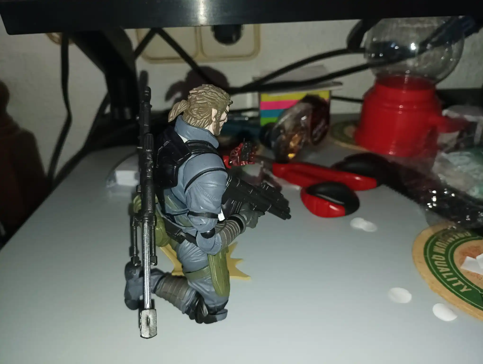 Tenue tactique, bras mécanique, équipement complet – cette figurine de 20cm retranscrit parfaitement l’intensité du personnage et de l’univers Metal Gear.